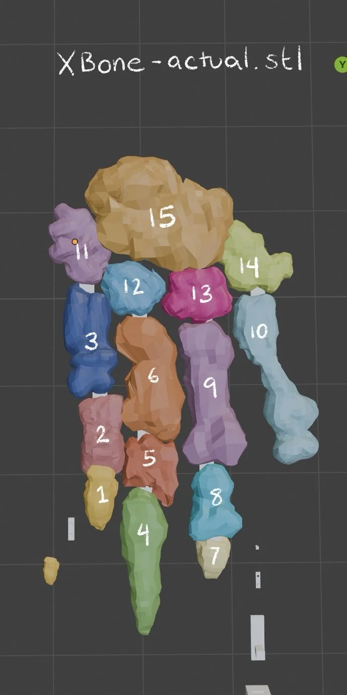 As a summer intern in the NCMNS Visual World Lab I pursued a summer long project developing a 3D model and life size print of the claw of the museum’s giant ground sloth. Being unfamiliar with blender at the start of the internship, the lab coordinators guided me to a level of fluency in the program and assisted in the trial and errors phase of my 3D printing journey. The most challenging part of this project however, was not the modeling or the printing but the engineering that went into making each joint in the claw articulated. This took many rounds of revisions and experimentation with printer settings and filament types.